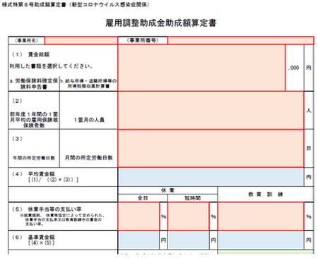 「新様式特第7、8号 支給申請書(休業等)、助成額算定書