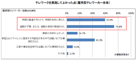 「通勤が不要、または、通勤の負担が軽減された」で 73.8%