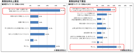 2.[令和2年度調査]テレワークによる労働時間変化/業務効率向上・低下要因
