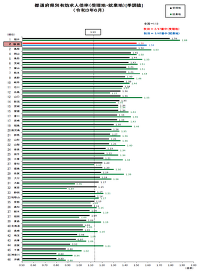 図表出典:秋田労働局「秋田県内の雇用情勢(令和3年6月)」