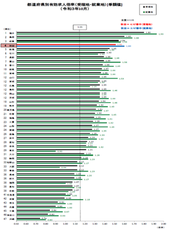 図表出典:秋田労働局「秋田県内の雇用情勢(令和3年10月)」