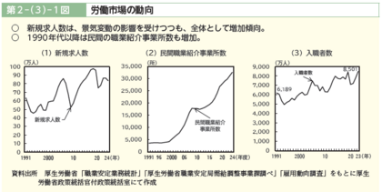 1990年代以降民間の職業紹介事業所数も増加し転職市場が拡大