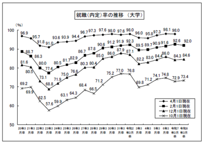 10月1日現在・12月1日現在・2月1日現在の調査結果を"就職内定率"と称し、