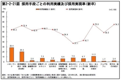 新卒採用:ハローワーク:64.2% 就職ポータルサイト:66.7% 自社ホームページ:37.1%という調査結果でした。