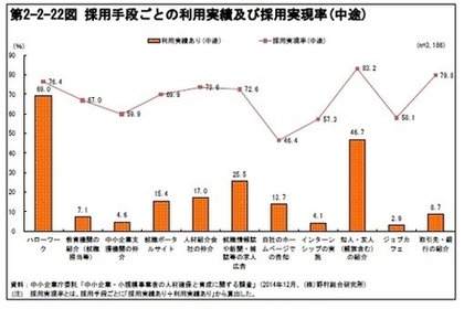 中途採用:ハローワーク:76.4% 就職ポータルサイト:69.9% 自社ホームページ:46.4%