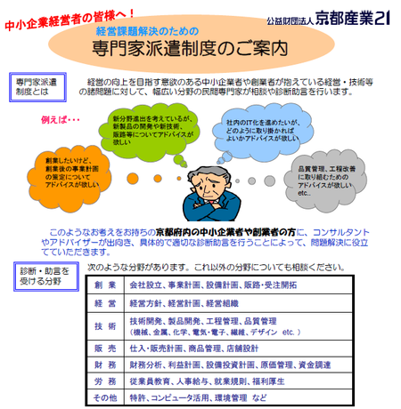公益財団法人京都産業21 「専門家派遣制度」のご紹介