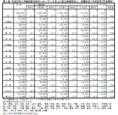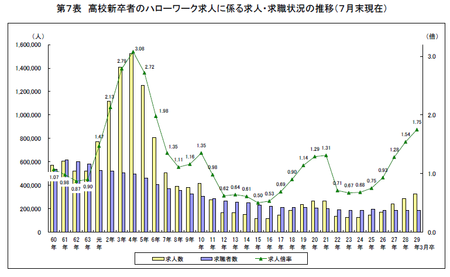 平成28年度「高校・中学新卒者のハローワーク求人に係る求人・求職状況」取りまとめ