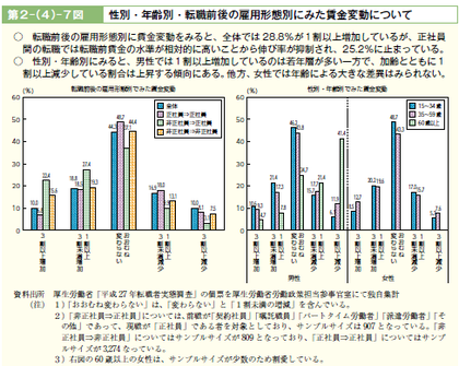 3. 【平成30年版 労働経済白書】雇用形態別 転職前後の賃金変動の状況 [#32-2018]