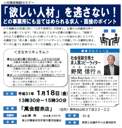 【主催】主催:巻公共職業安定所管内雇用協議会共催:燕商工会議所中小企業相談所