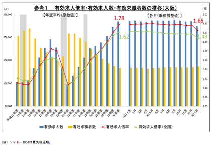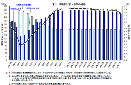 有効求人倍率等の低下に影響していることに注意が必要。