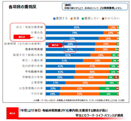 “働き方改革”や“ワーク・ライフ・バランス”が学生にも浸透している様子がうかがえる。