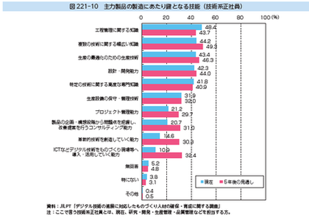 「技能系」・「技術系」正社員に求める技能(「2020年版ものづくり白書」第2章より)