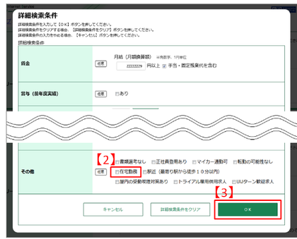 「在宅勤務」チェックによる検索方法