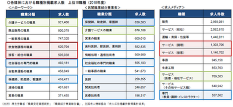 ハローワークや民間職業紹介事業者で上位に