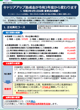 ■ キャリアアップ助成金 令和3年4月以降変更のトピックス