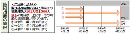 従業員が100人を超える事業主は、一部の加算措置を除き令和3年9月末まで