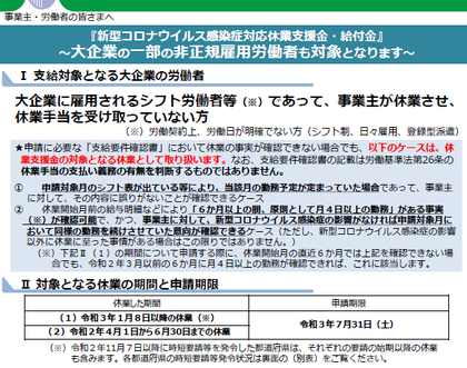 休業支援金・給付金の大企業の非正規雇用労働者の取扱いについて