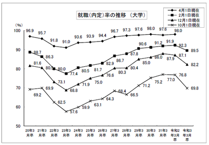 今般、発表された就職内定率は