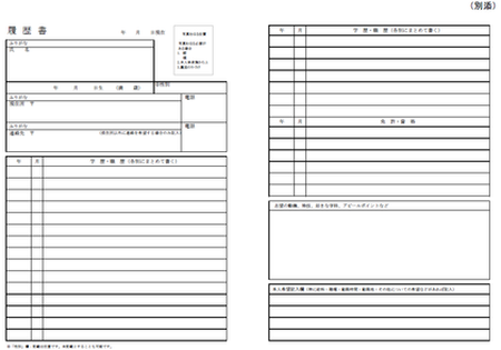 ホームページでは、今般制定の「履歴書様式例」の