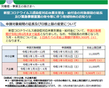 「新型コロナウイルス感染症対応休業支援金・給付金の対象期間の延長