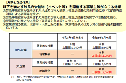 ※上記対象期間・区域指定等は"令和3年4月30日時点"リリースの内容です