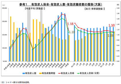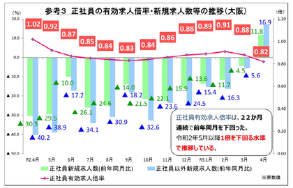 令和3年4月 大阪府の状況 ※有効求人倍率は2か月連続の低下