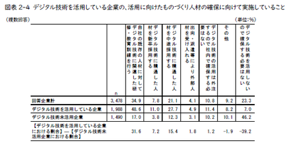 「デジタル技術を自社の事業で活用・応用できる能力(生産性向上、技術革新など)」:49.6%