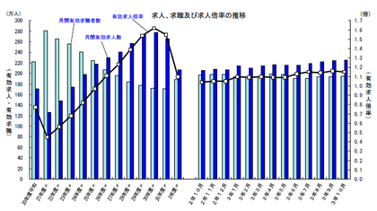 10月 全国有効求人倍率1.15倍 大阪は前月と同倍率で推移