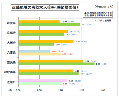 図表出典:兵庫労働局「一般職業紹介状況(令和3年10月分)」