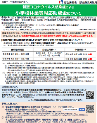 新型コロナウイルス感染症による小学校休業等対応助成金について