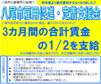 八尾市雇用促進・定着支援金について