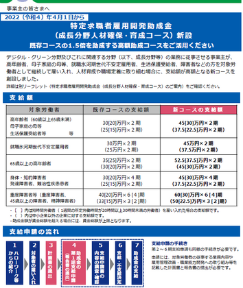 図表出典:厚生労働省 特定求職者雇用開発助成金(成長分野人材確保・育成コース)のご案内