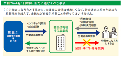 労働者に金銭やギフト券等を提供することは原則禁止になります(募集情報等提供事業者の皆さまへ)