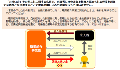 「就職お祝い金」などの名目で求職者に金銭等を提供して求職の申し込みの勧奨を行うことを禁止しました(令和3年3月2日)