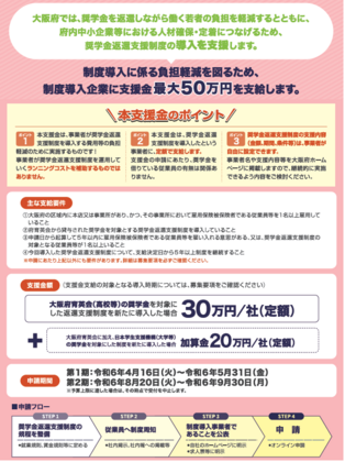 下記、【出典・引用】大阪府奨学金返還支援制度導入促進事業 特設ページで