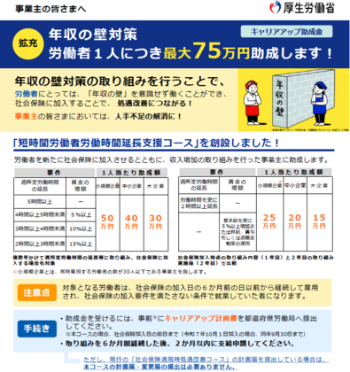 ・キャリアアップ助成金(短時間労働者労働時間延長支援コース)のご案内(リーフレット)
