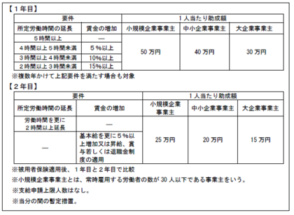 「労働時間延長メニュー」の要件を見直すとともに、助成額を拡充した新たなコース
