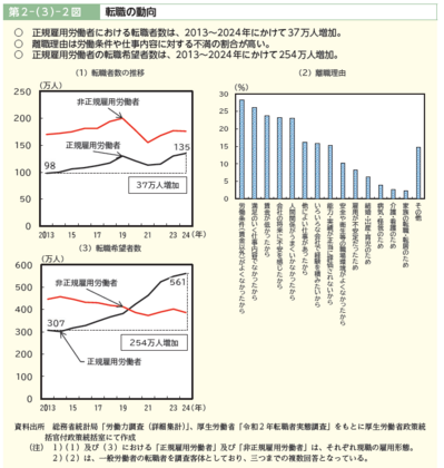 現職が正規雇用労働者である転職者数は2013~2024年にかけて37万人増加