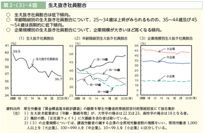 新卒採用時から継続的に同一企業に就業している労働者を「生え抜き社員」と定義