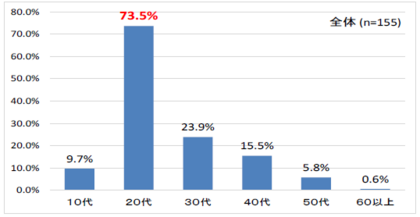 10代: 9.7% 20代:73.5% 30代:23.9%