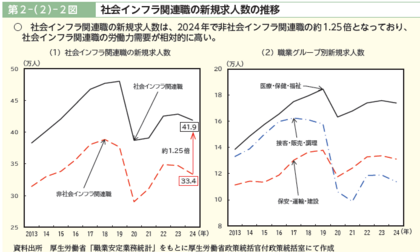 2024年で非社会インフラ関連職の約4割にとどまり、相対的に労働力供給が弱い