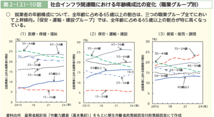 【年齢構成比の変化(職業グループ別)(第2-(2)-10図)】
