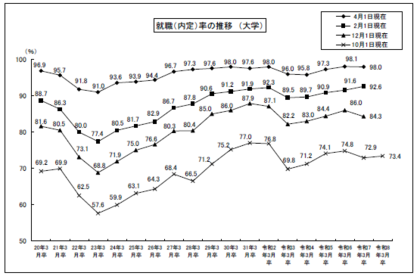 10月1日現在・12月1日現在・2月1日現在の調査結果を"就職内定率"と称し、