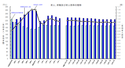 3. 2月平均有効求人倍率2か月ぶり上昇 大阪は7か月連続低下も求職者は増加