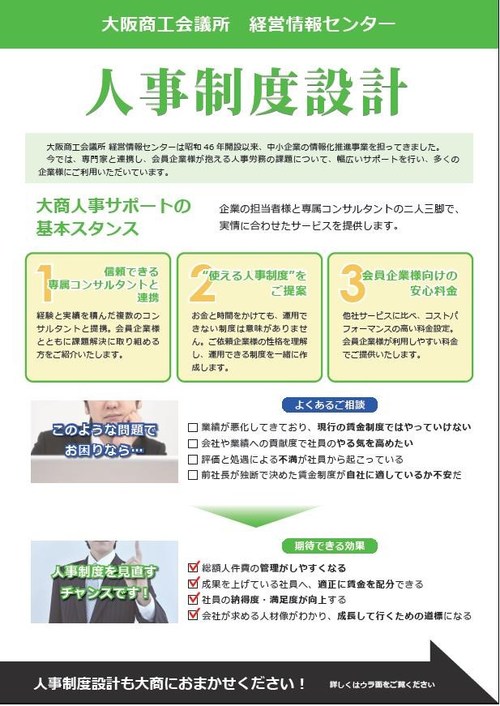【お問合せ先】[窓口]大阪商工会議所 経営情報センター人事労務サポートサービス〒540-0029 大阪市中央区本町橋2-8 TEL:06-6944-6353/ FAX:06-6946-7214 E-mail : roumu@osaka.cci.or.jp