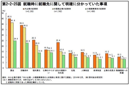 1.企業の規模によって就業時における情報の明確性が大きく異なる。