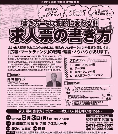 2. #015 〜欲しい人材を呼び寄せる!〜「求人票の書き方」セミナー (2015.08.03)【主催:姫路商工会議所】